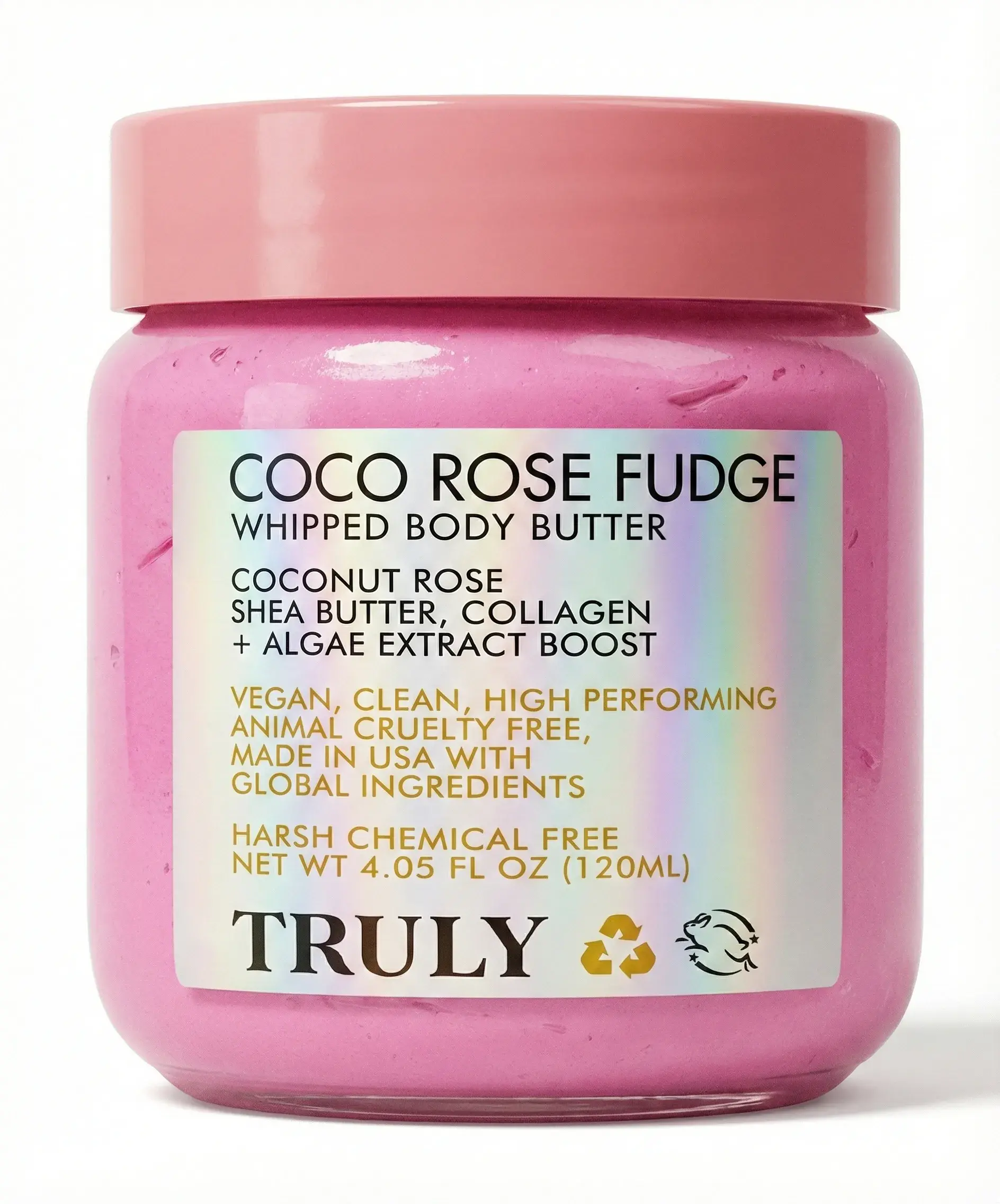 Paso 2: Nutrir y Reafirmar Coco Rose Fudge Whipped Body Butter (90ml) El sellado final de lujo. Una manteca corporal batida rica en Colágeno Vegano y Rosa Damascena que se funde sobre la piel tratada para restaurar su barrera protectora.